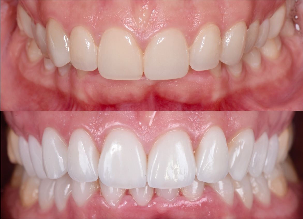 Estas carillas fueron elaboradas en nuestro laboratorio de excelencia dental, el cual las completó en tan solo 7 días. Se crearon siguiendo el diseño de sonrisa personalizado que la paciente previamente había aprobado. Una vez que recibimos las carillas dentales, procedí a cementarlas y a tomar las fotografías finales.